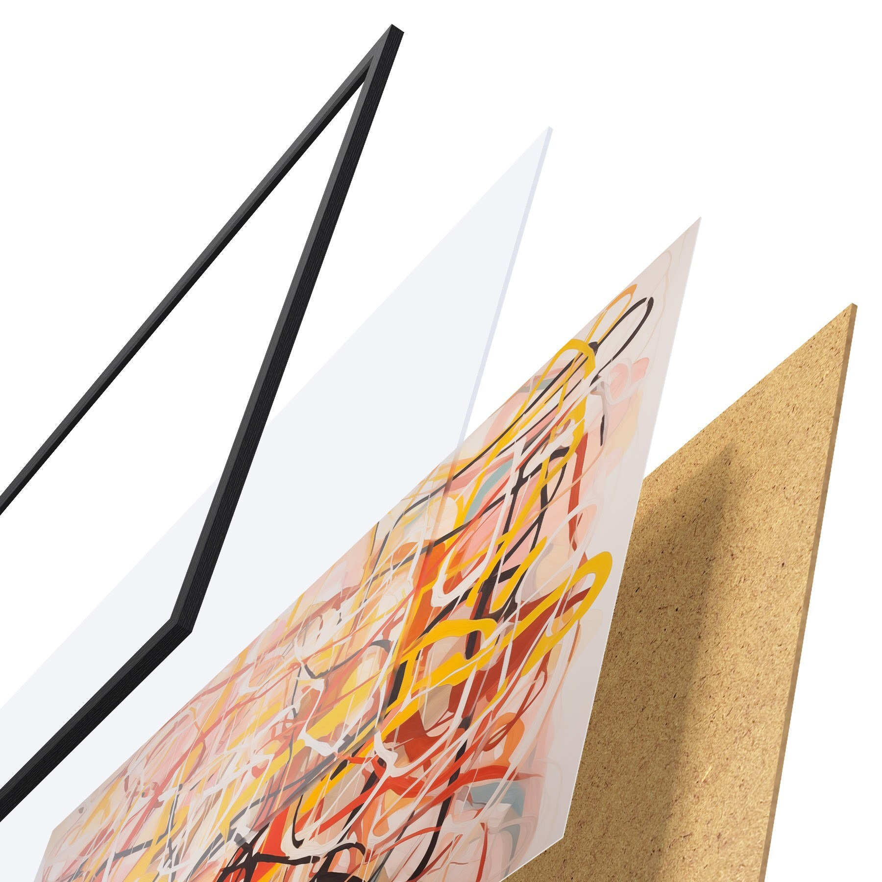Plakát se skládá z rámu, plexiskla, tištěného obrazu a dřevotřískového podkladu. Díky úchytům na zadní straně lze plakát ihned zavěsit na zeď.