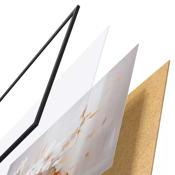 Plakát se skládá z rámu, plexiskla, tištěného obrazu a dřevotřískového podkladu. Díky úchytům na zadní straně lze plakát ihned zavěsit na zeď.