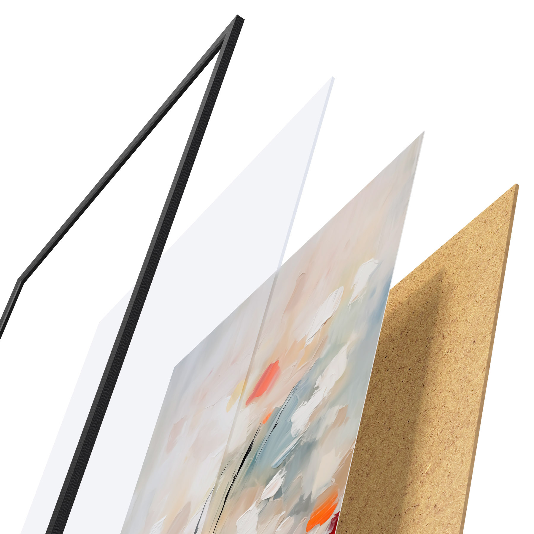 Plakát se skládá z rámu, plexiskla, tištěného obrazu a dřevotřískového podkladu. Díky úchytům na zadní straně lze plakát ihned zavěsit na zeď.