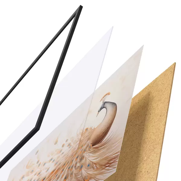 Plakát se skládá z rámu, plexiskla, tištěného obrazu a dřevotřískového podkladu. Díky úchytům na zadní straně lze plakát ihned zavěsit na zeď.
