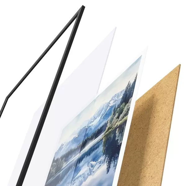 Plakát se skládá z rámu, plexiskla, tištěného obrazu a dřevotřískového podkladu. Díky úchytům na zadní straně lze plakát ihned zavěsit na zeď.