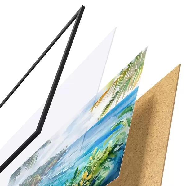Plakát se skládá z rámu, plexiskla, tištěného obrazu a dřevotřískového podkladu. Díky úchytům na zadní straně lze plakát ihned zavěsit na zeď.