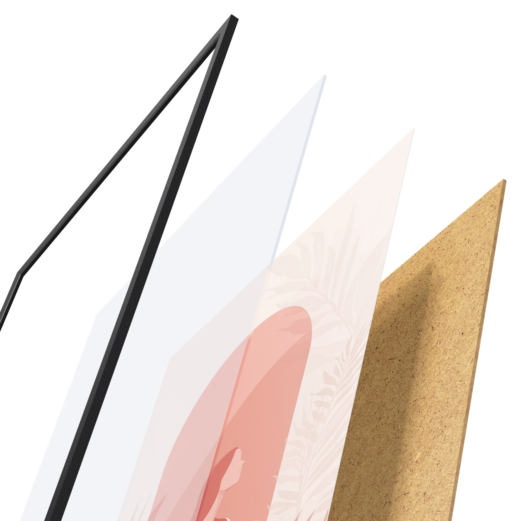 Plakát se skládá z rámu, plexiskla, tištěného obrazu a dřevotřískového podkladu. Díky úchytům na zadní straně lze plakát ihned zavěsit na zeď.