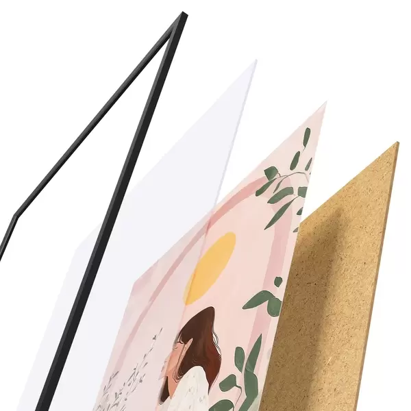 Plakát se skládá z rámu, plexiskla, tištěného obrazu a dřevotřískového podkladu. Díky úchytům na zadní straně lze plakát ihned zavěsit na zeď.