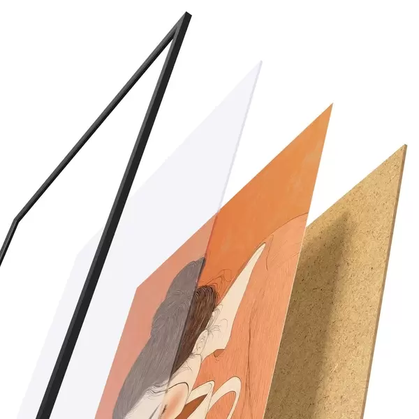 Plakát se skládá z rámu, plexiskla, tištěného obrazu a dřevotřískového podkladu. Díky úchytům na zadní straně lze plakát ihned zavěsit na zeď.
