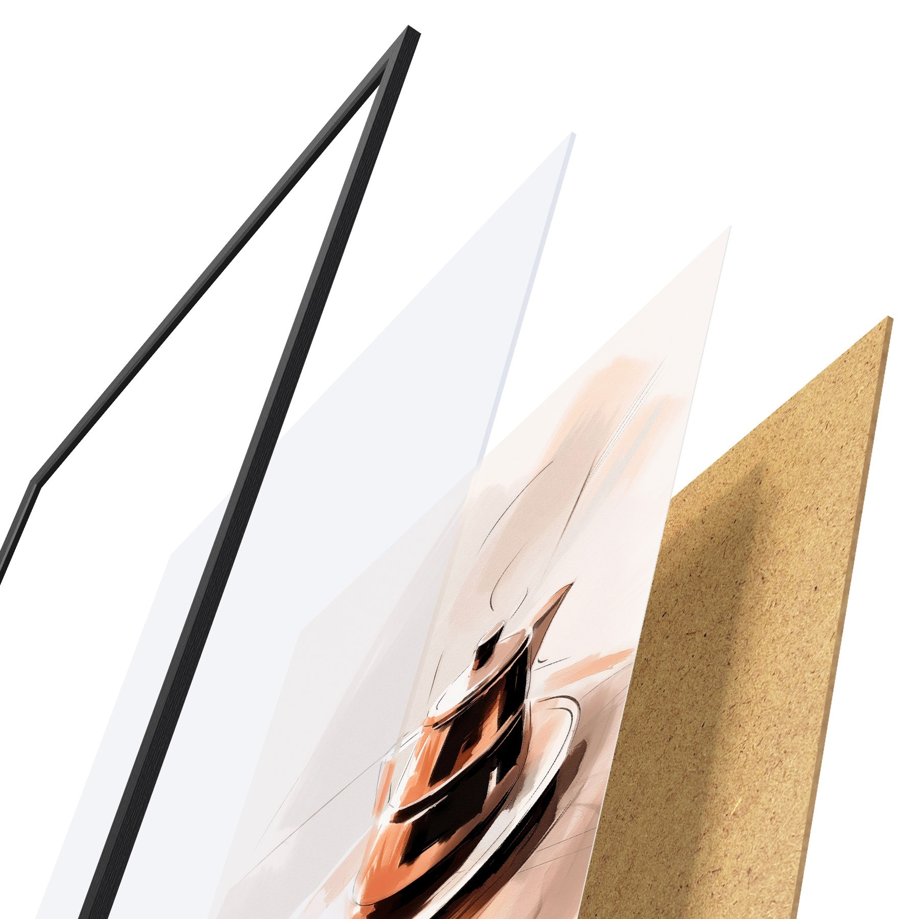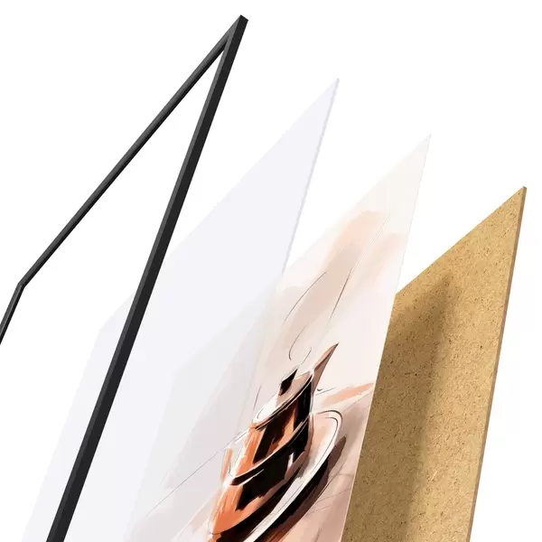 Plakát se skládá z rámu, plexiskla, tištěného obrazu a dřevotřískového podkladu. Díky úchytům na zadní straně lze plakát ihned zavěsit na zeď.