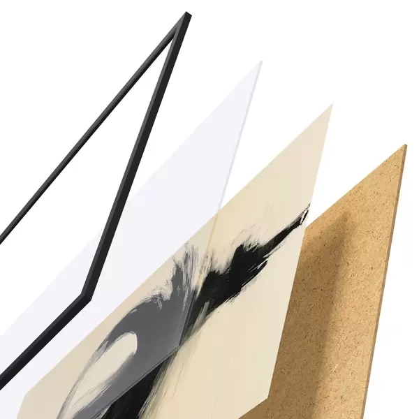 Plakát se skládá z rámu, plexiskla, tištěného obrazu a dřevotřískového podkladu. Díky úchytům na zadní straně lze plakát ihned zavěsit na zeď.