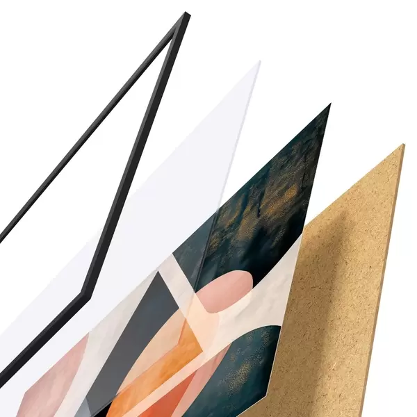Plakát se skládá z rámu, plexiskla, tištěného obrazu a dřevotřískového podkladu. Díky úchytům na zadní straně lze plakát ihned zavěsit na zeď.