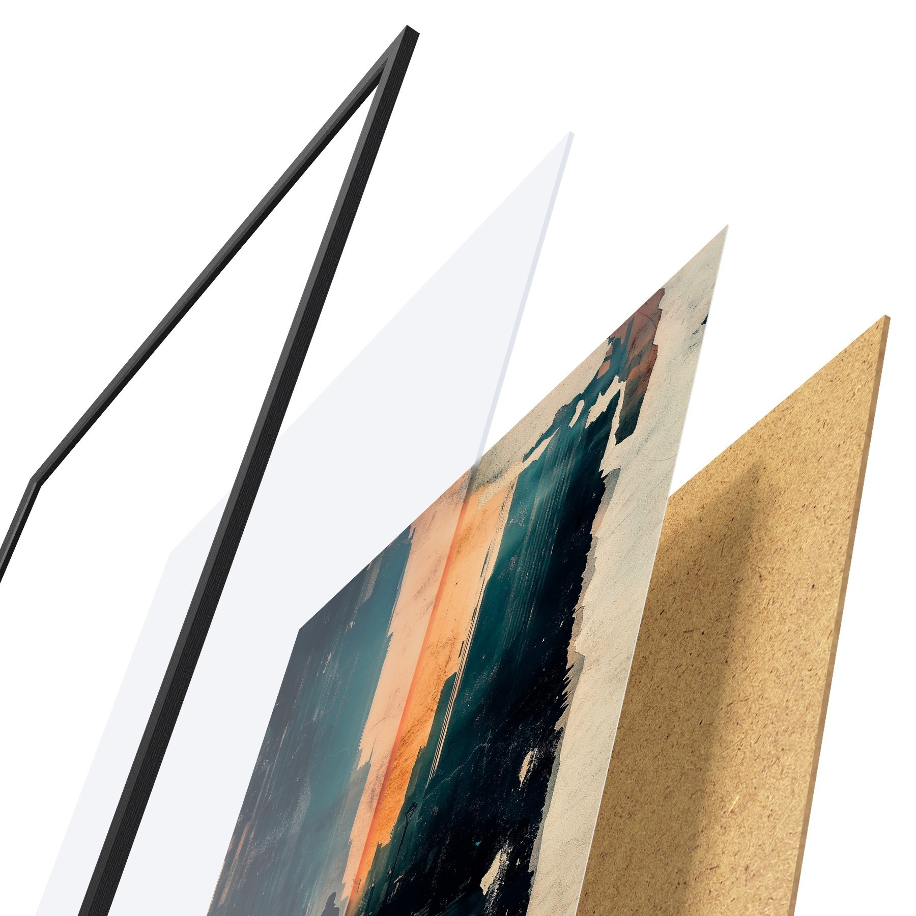 Plakát se skládá z rámu, plexiskla, tištěného obrazu a dřevotřískového podkladu. Díky úchytům na zadní straně lze plakát ihned zavěsit na zeď.