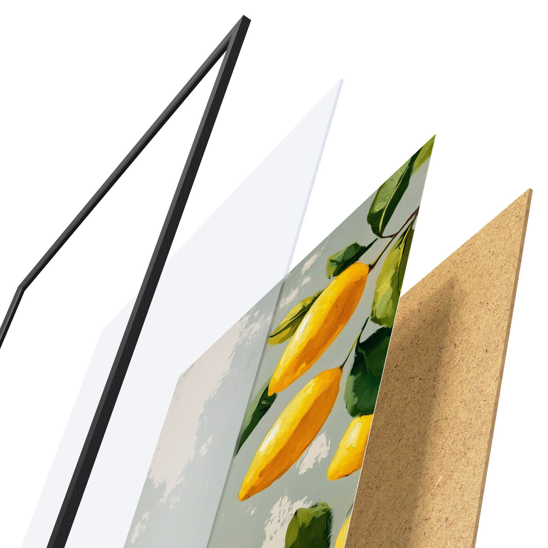 Plakát se skládá z rámu, plexiskla, tištěného obrazu a dřevotřískového podkladu. Díky úchytům na zadní straně lze plakát ihned zavěsit na zeď.