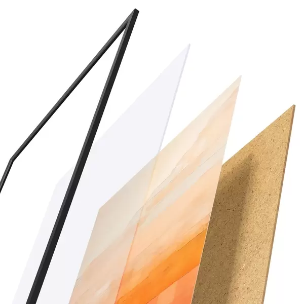 Plakát se skládá z rámu, plexiskla, tištěného obrazu a dřevotřískového podkladu. Díky úchytům na zadní straně lze plakát ihned zavěsit na zeď.