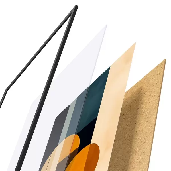 Plakát se skládá z rámu, plexiskla, tištěného obrazu a dřevotřískového podkladu. Díky úchytům na zadní straně lze plakát ihned zavěsit na zeď.