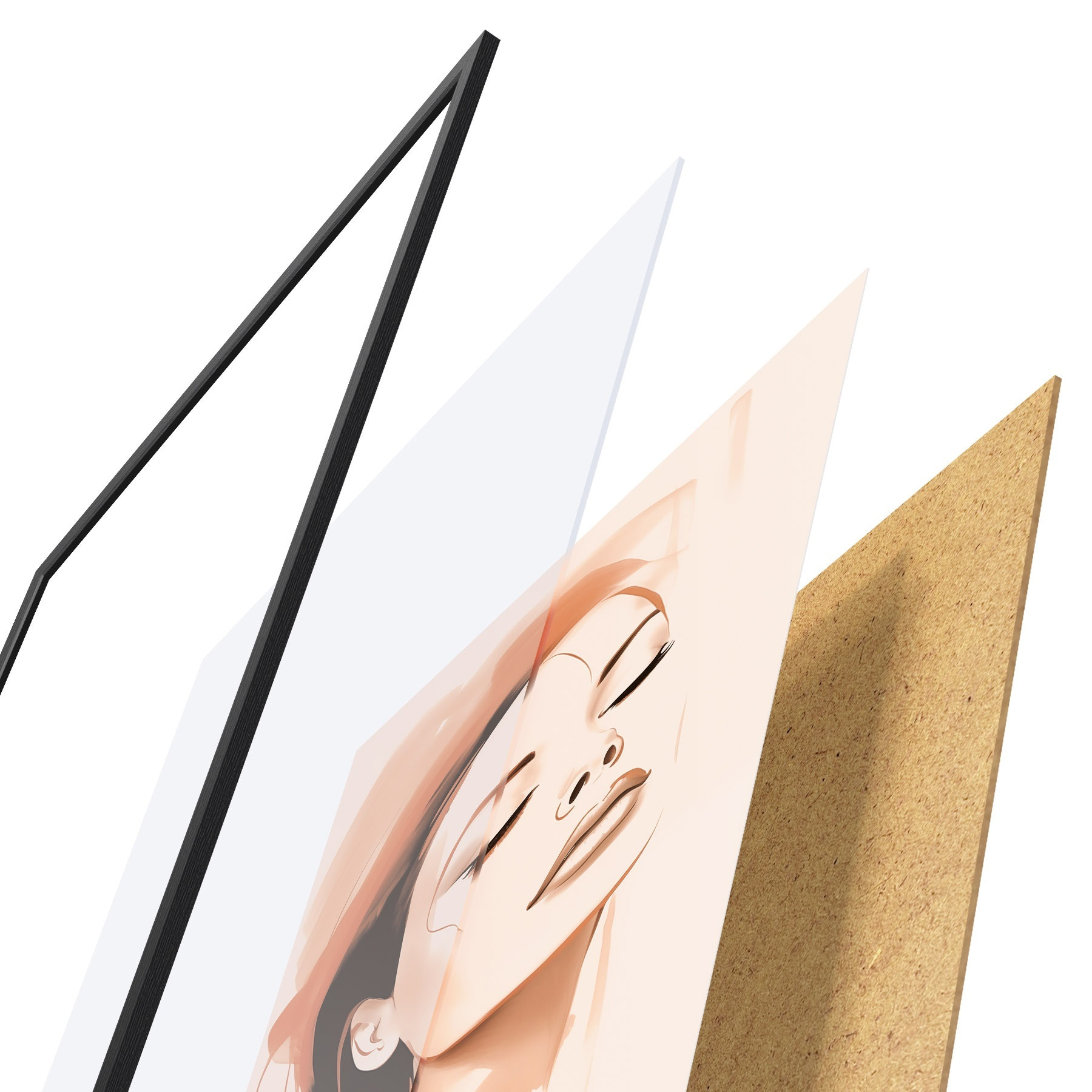 Plakát se skládá z rámu, plexiskla, tištěného obrazu a dřevotřískového podkladu. Díky úchytům na zadní straně lze plakát ihned zavěsit na zeď.