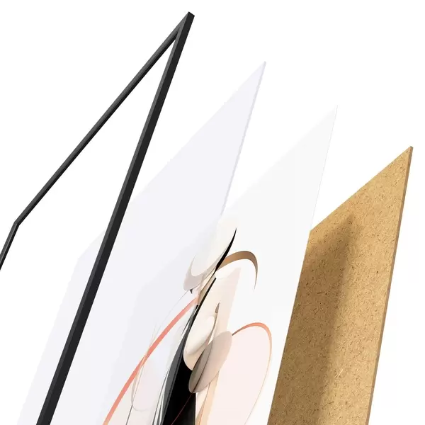 Plakát se skládá z rámu, plexiskla, tištěného obrazu a dřevotřískového podkladu. Díky úchytům na zadní straně lze plakát ihned zavěsit na zeď.