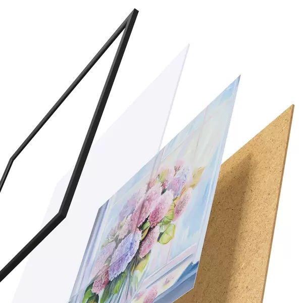 Plakát se skládá z rámu, plexiskla, tištěného obrazu a dřevotřískového podkladu. Díky úchytům na zadní straně lze plakát ihned zavěsit na zeď.
