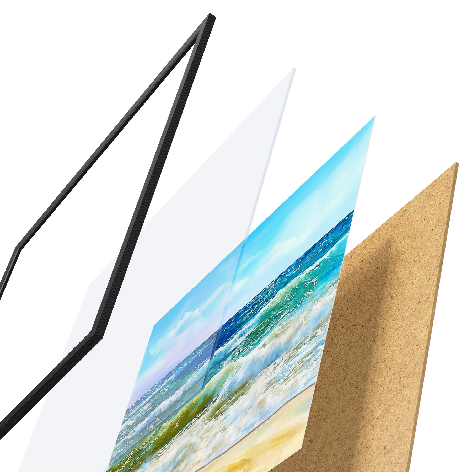 Plakát se skládá z rámu, plexiskla, tištěného obrazu a dřevotřískového podkladu. Díky úchytům na zadní straně lze plakát ihned zavěsit na zeď.