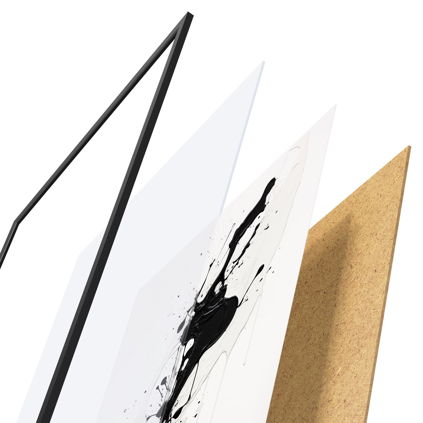 Plakát se skládá z rámu, plexiskla, tištěného obrazu a dřevotřískového podkladu. Díky úchytům na zadní straně lze plakát ihned zavěsit na zeď.