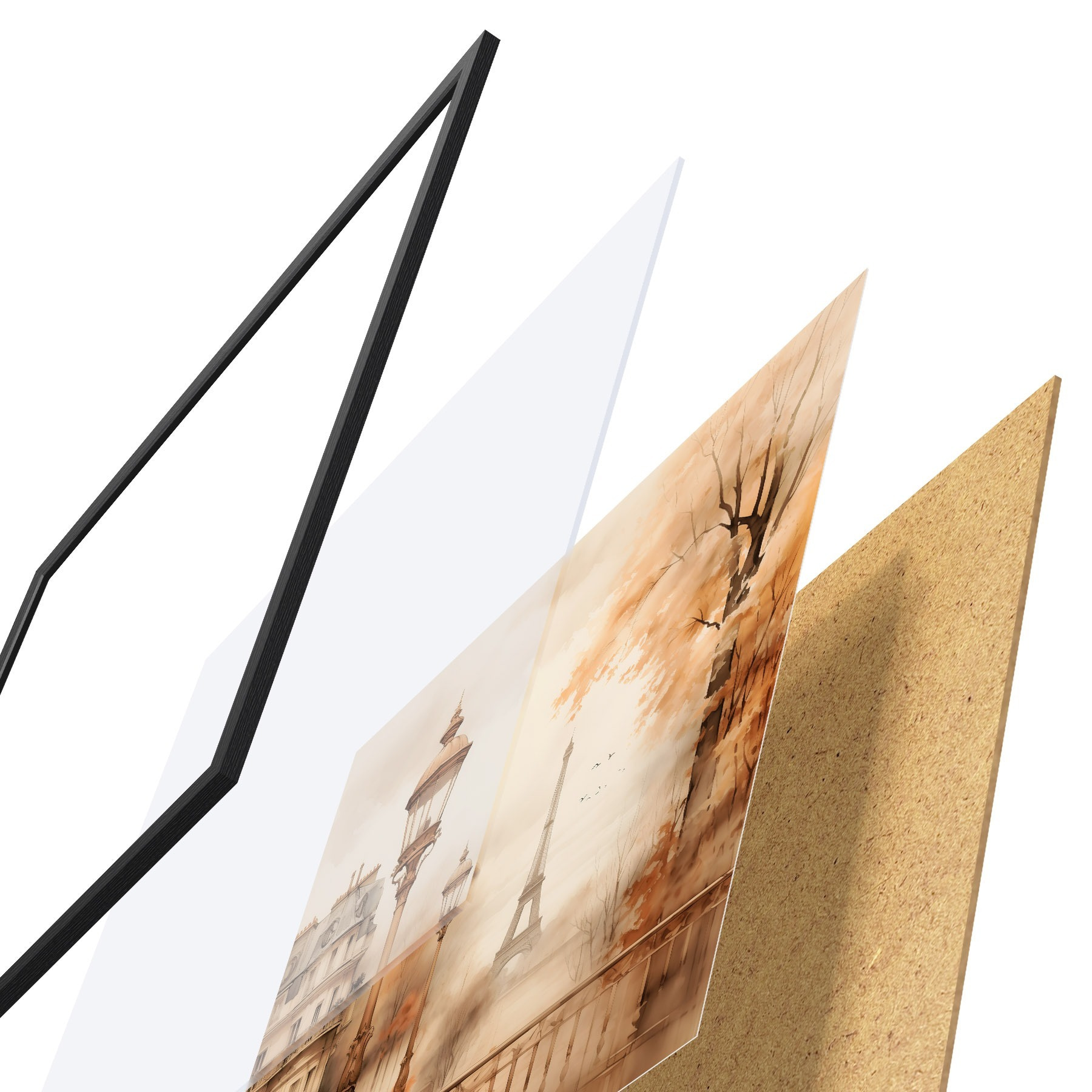 Plakát se skládá z rámu, plexiskla, tištěného obrazu a dřevotřískového podkladu. Díky úchytům na zadní straně lze plakát ihned zavěsit na zeď.