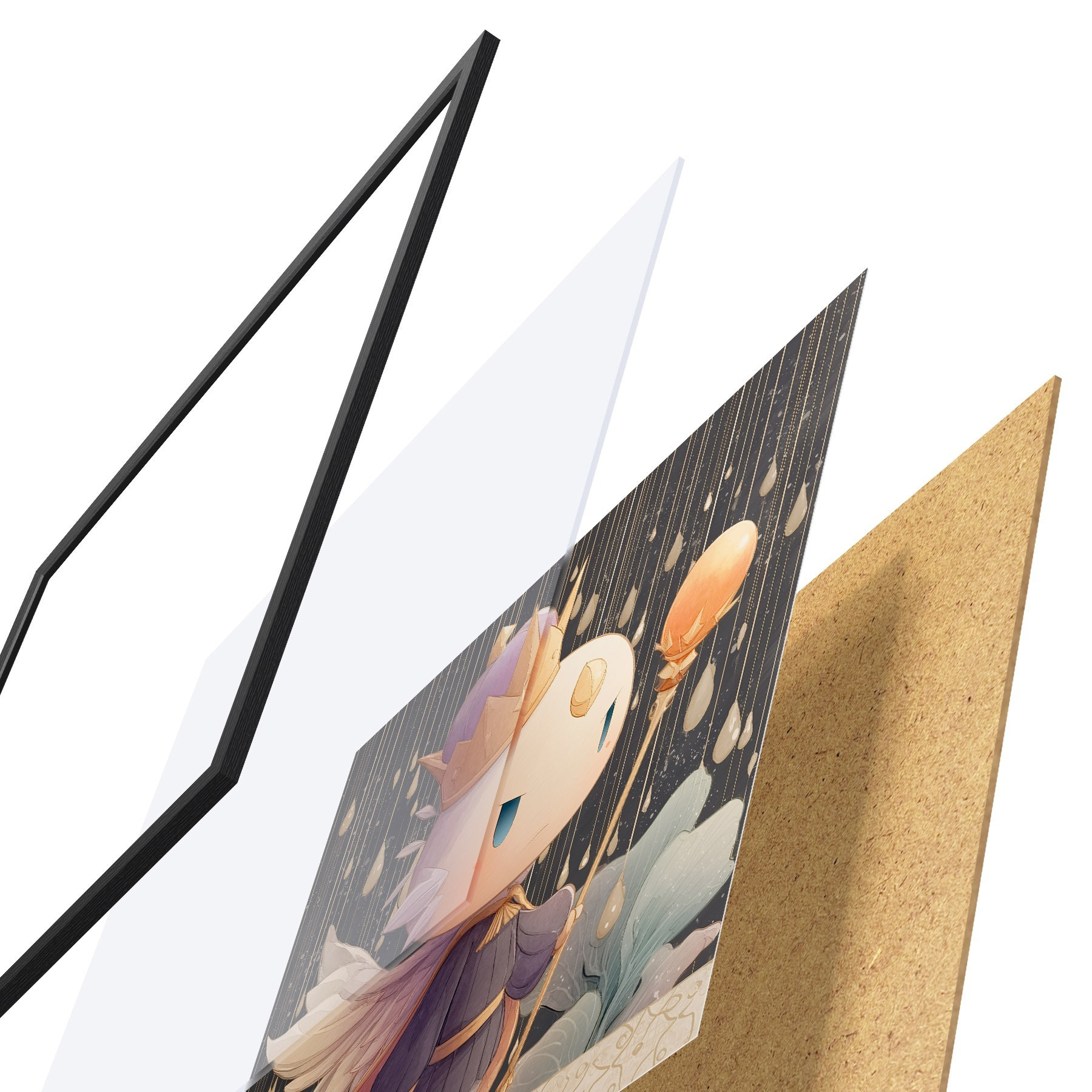 Plakát se skládá z rámu, plexiskla, tištěného obrazu a dřevotřískového podkladu. Díky úchytům na zadní straně lze plakát ihned zavěsit na zeď.