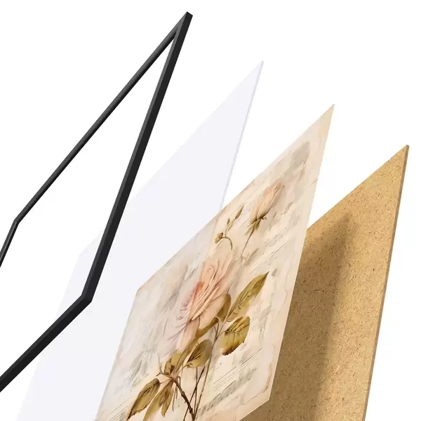 Plakát se skládá z rámu, plexiskla, tištěného obrazu a dřevotřískového podkladu. Díky úchytům na zadní straně lze plakát ihned zavěsit na zeď.