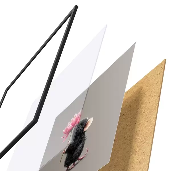 Plakát se skládá z rámu, plexiskla, tištěného obrazu a dřevotřískového podkladu. Díky úchytům na zadní straně lze plakát ihned zavěsit na zeď.