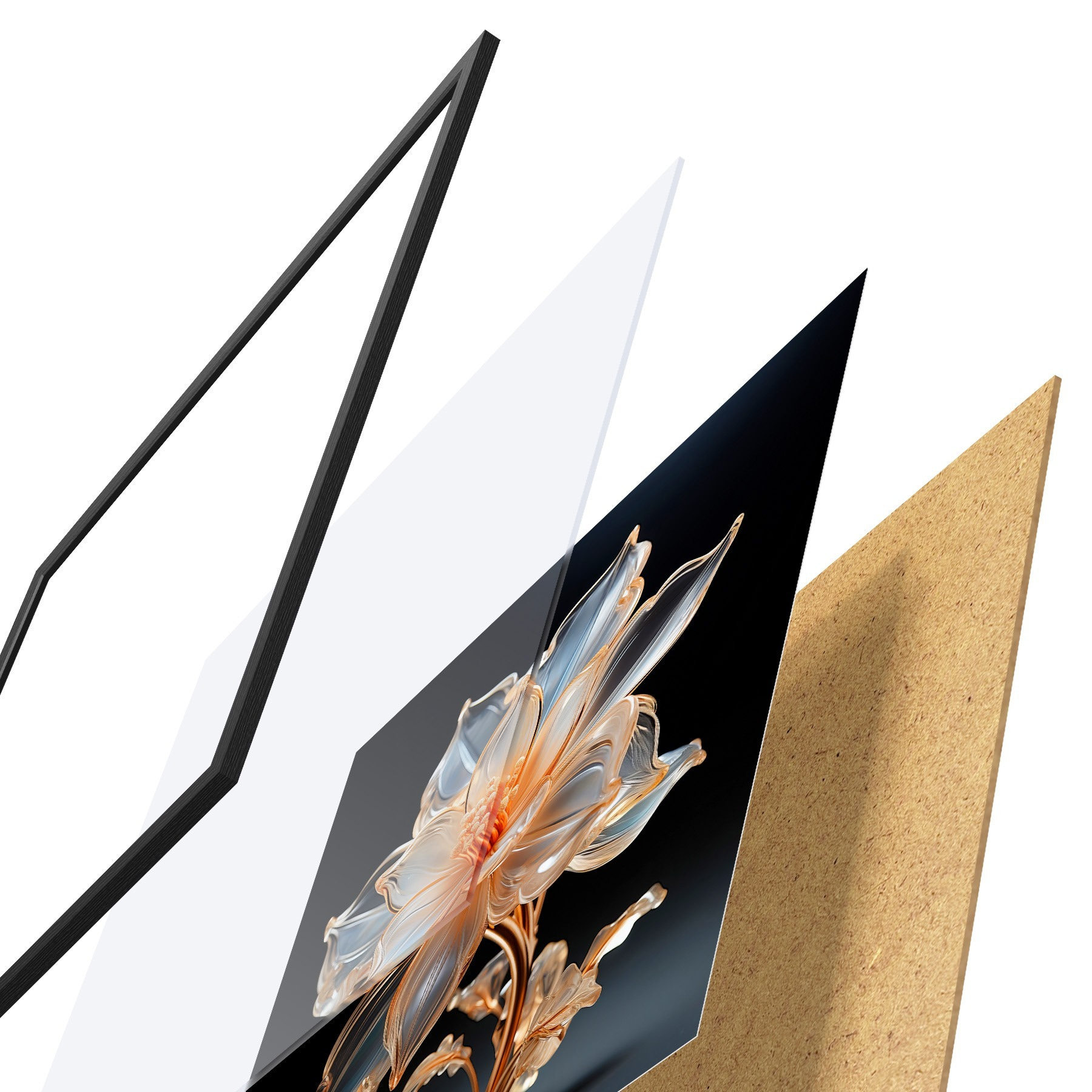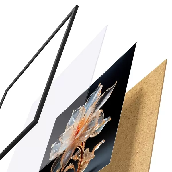 Plakát se skládá z rámu, plexiskla, tištěného obrazu a dřevotřískového podkladu. Díky úchytům na zadní straně lze plakát ihned zavěsit na zeď.