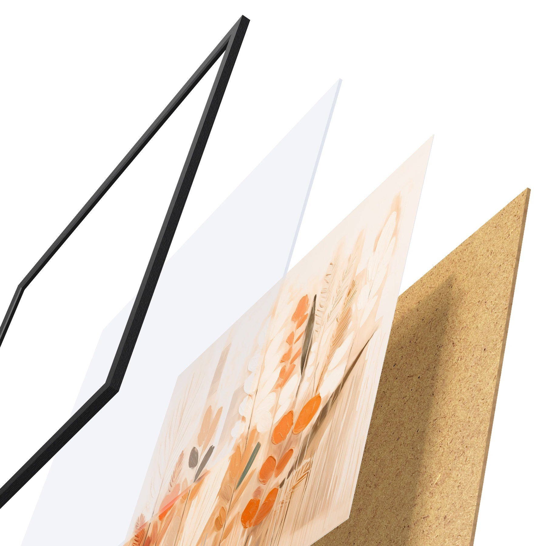 Plakát se skládá z rámu, plexiskla, tištěného obrazu a dřevotřískového podkladu. Díky úchytům na zadní straně lze plakát ihned zavěsit na zeď.