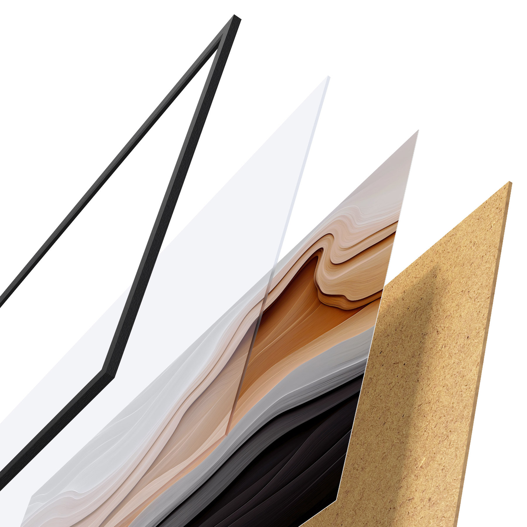 Plakát se skládá z rámu, plexiskla, tištěného obrazu a dřevotřískového podkladu. Díky úchytům na zadní straně lze plakát ihned zavěsit na zeď.
