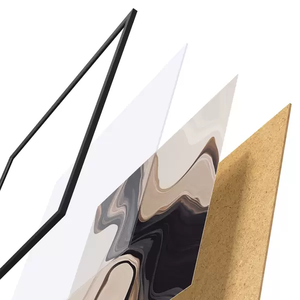 Plakát se skládá z rámu, plexiskla, tištěného obrazu a dřevotřískového podkladu. Díky úchytům na zadní straně lze plakát ihned zavěsit na zeď.