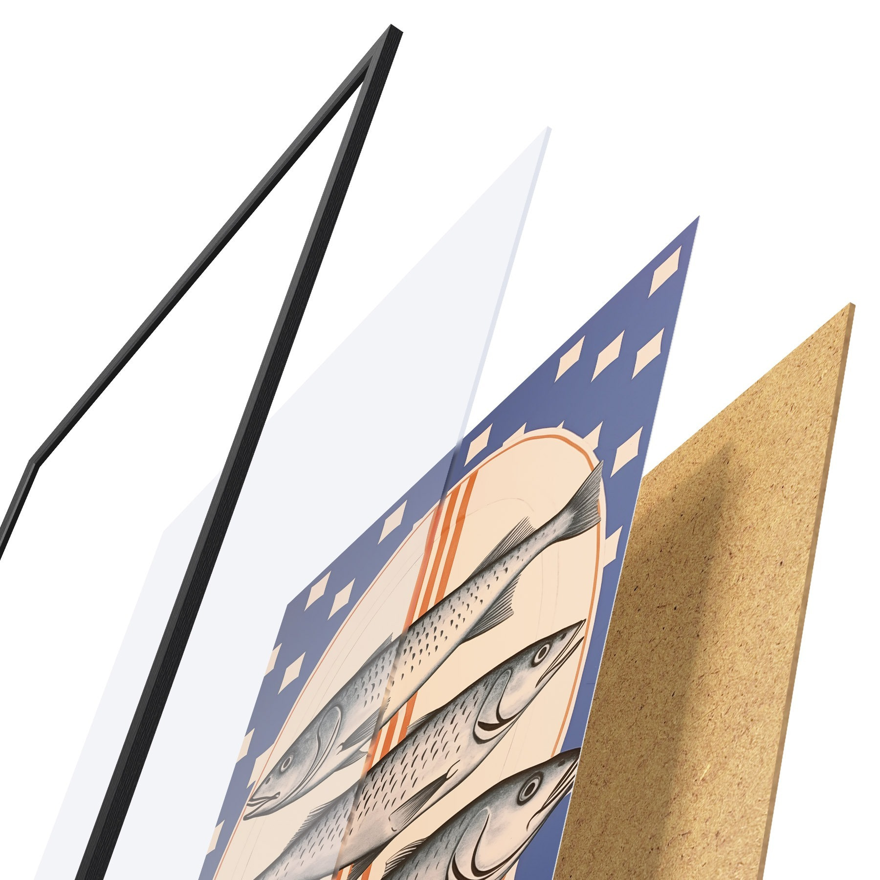 Plakát se skládá z rámu, plexiskla, tištěného obrazu a dřevotřískového podkladu. Díky úchytům na zadní straně lze plakát ihned zavěsit na zeď.