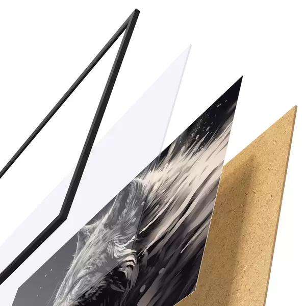 Plakát se skládá z rámu, plexiskla, tištěného obrazu a dřevotřískového podkladu. Díky úchytům na zadní straně lze plakát ihned zavěsit na zeď.