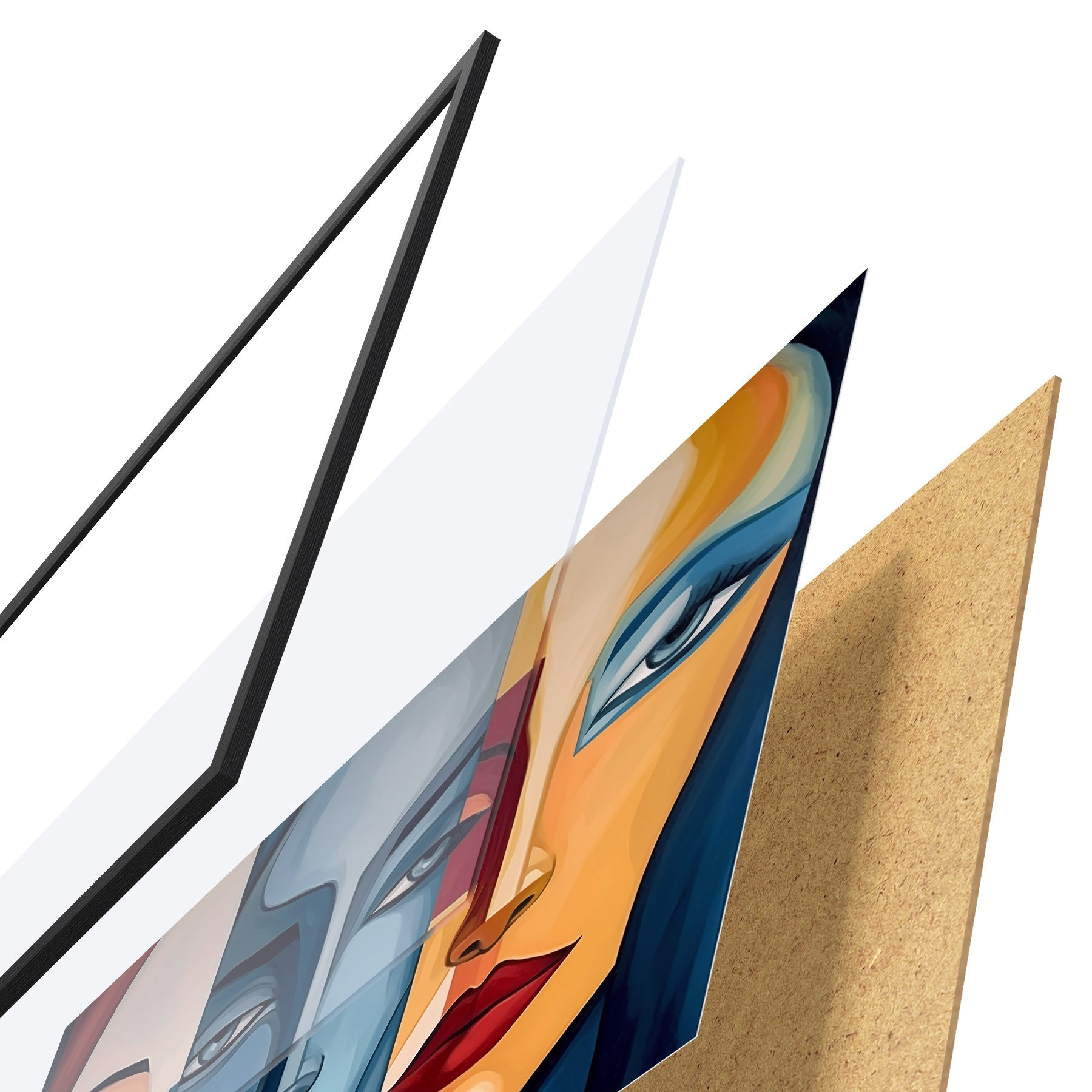 Plakát se skládá z rámu, plexiskla, tištěného obrazu a dřevotřískového podkladu. Díky úchytům na zadní straně lze plakát ihned zavěsit na zeď.