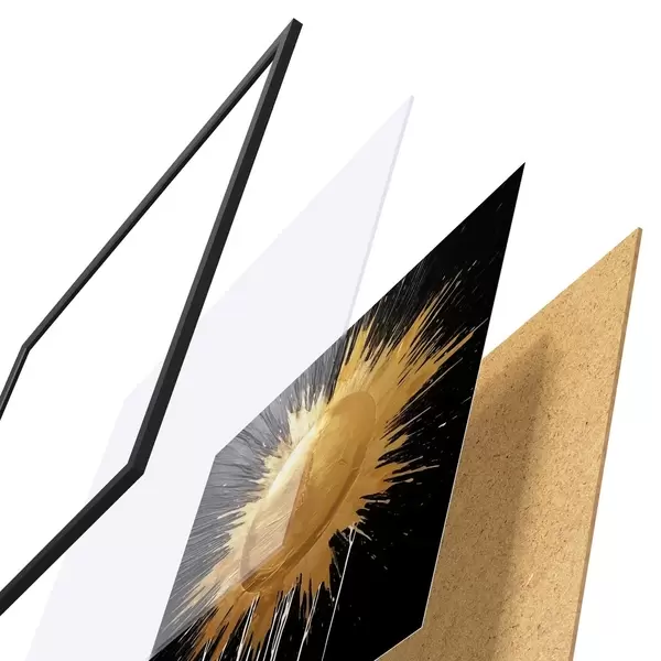 Plakát se skládá z rámu, plexiskla, tištěného obrazu a dřevotřískového podkladu. Díky úchytům na zadní straně lze plakát ihned zavěsit na zeď.