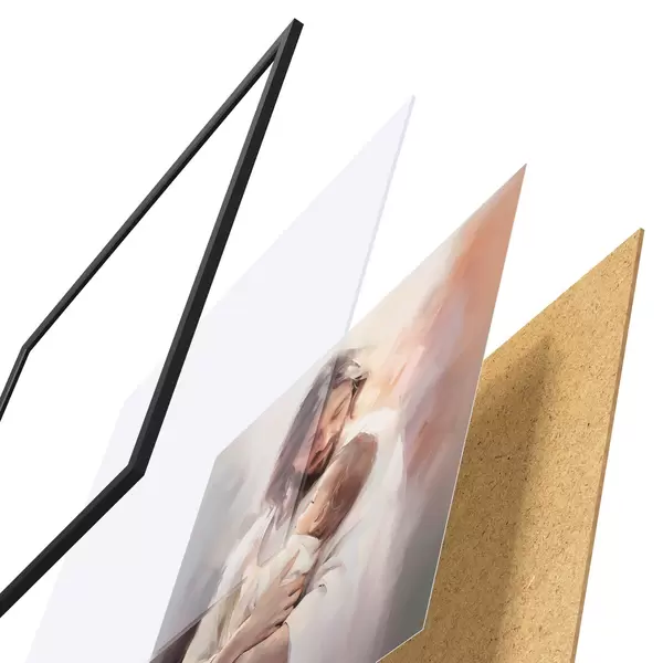 Plakát se skládá z rámu, plexiskla, tištěného obrazu a dřevotřískového podkladu. Díky úchytům na zadní straně lze plakát ihned zavěsit na zeď.