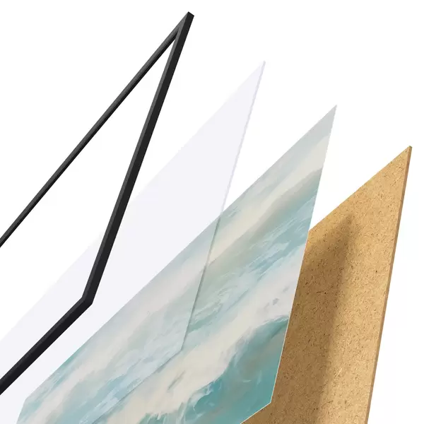 Plakát se skládá z rámu, plexiskla, tištěného obrazu a dřevotřískového podkladu. Díky úchytům na zadní straně lze plakát ihned zavěsit na zeď.