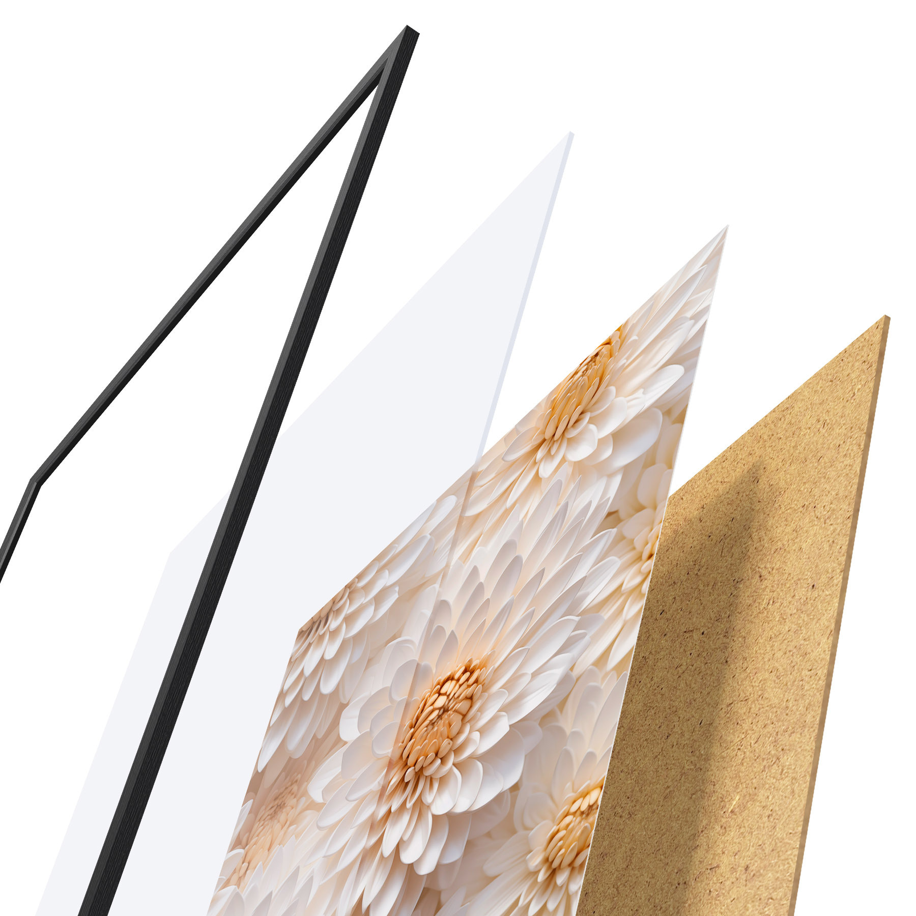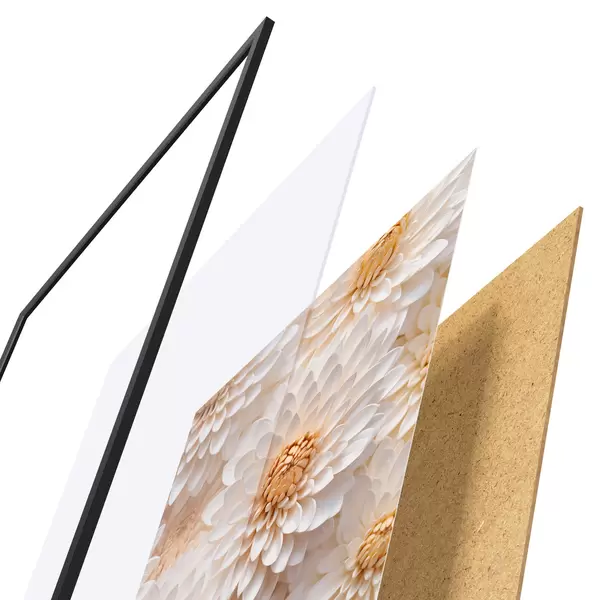 Plakát se skládá z rámu, plexiskla, tištěného obrazu a dřevotřískového podkladu. Díky úchytům na zadní straně lze plakát ihned zavěsit na zeď.