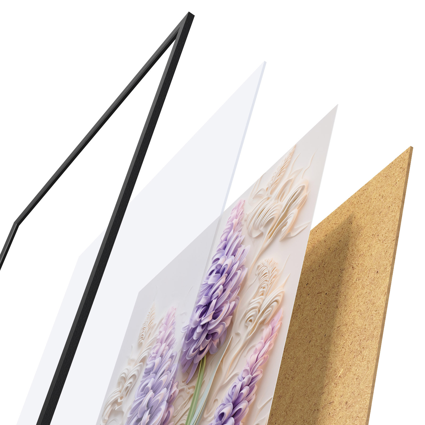 Plakát se skládá z rámu, plexiskla, tištěného obrazu a dřevotřískového podkladu. Díky úchytům na zadní straně lze plakát ihned zavěsit na zeď.
