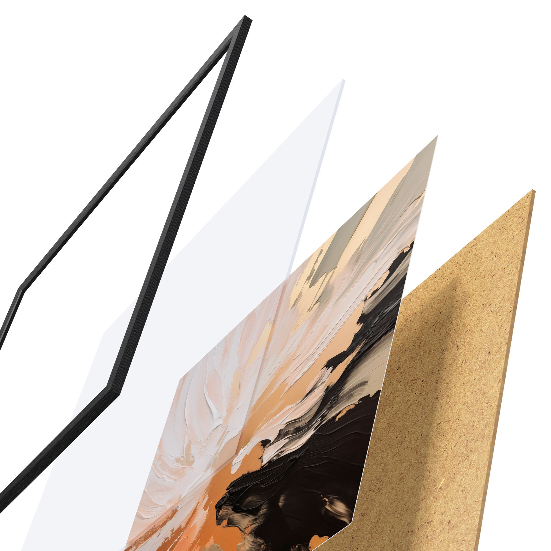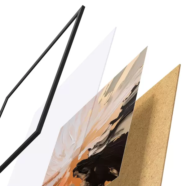 Plakát se skládá z rámu, plexiskla, tištěného obrazu a dřevotřískového podkladu. Díky úchytům na zadní straně lze plakát ihned zavěsit na zeď.