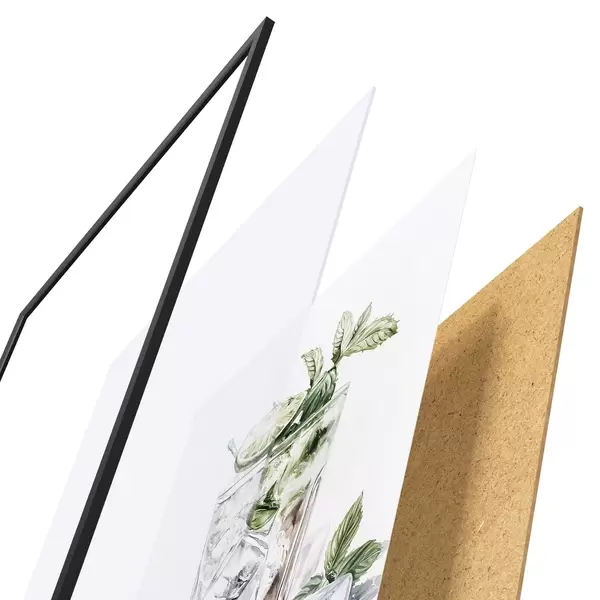 Plakát se skládá z rámu, plexiskla, tištěného obrazu a dřevotřískového podkladu. Díky úchytům na zadní straně lze plakát ihned zavěsit na zeď.