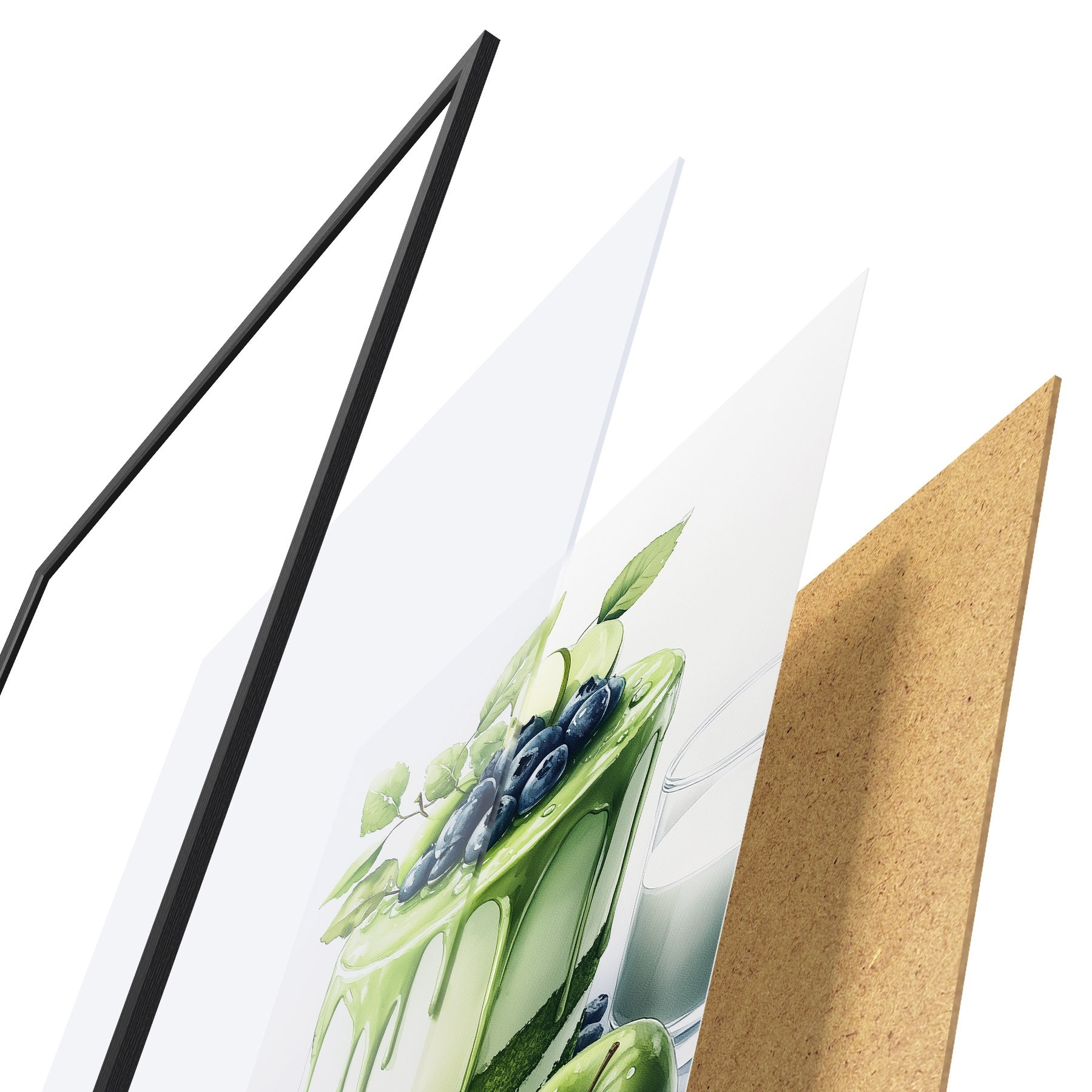 Plakát se skládá z rámu, plexiskla, tištěného obrazu a dřevotřískového podkladu. Díky úchytům na zadní straně lze plakát ihned zavěsit na zeď.