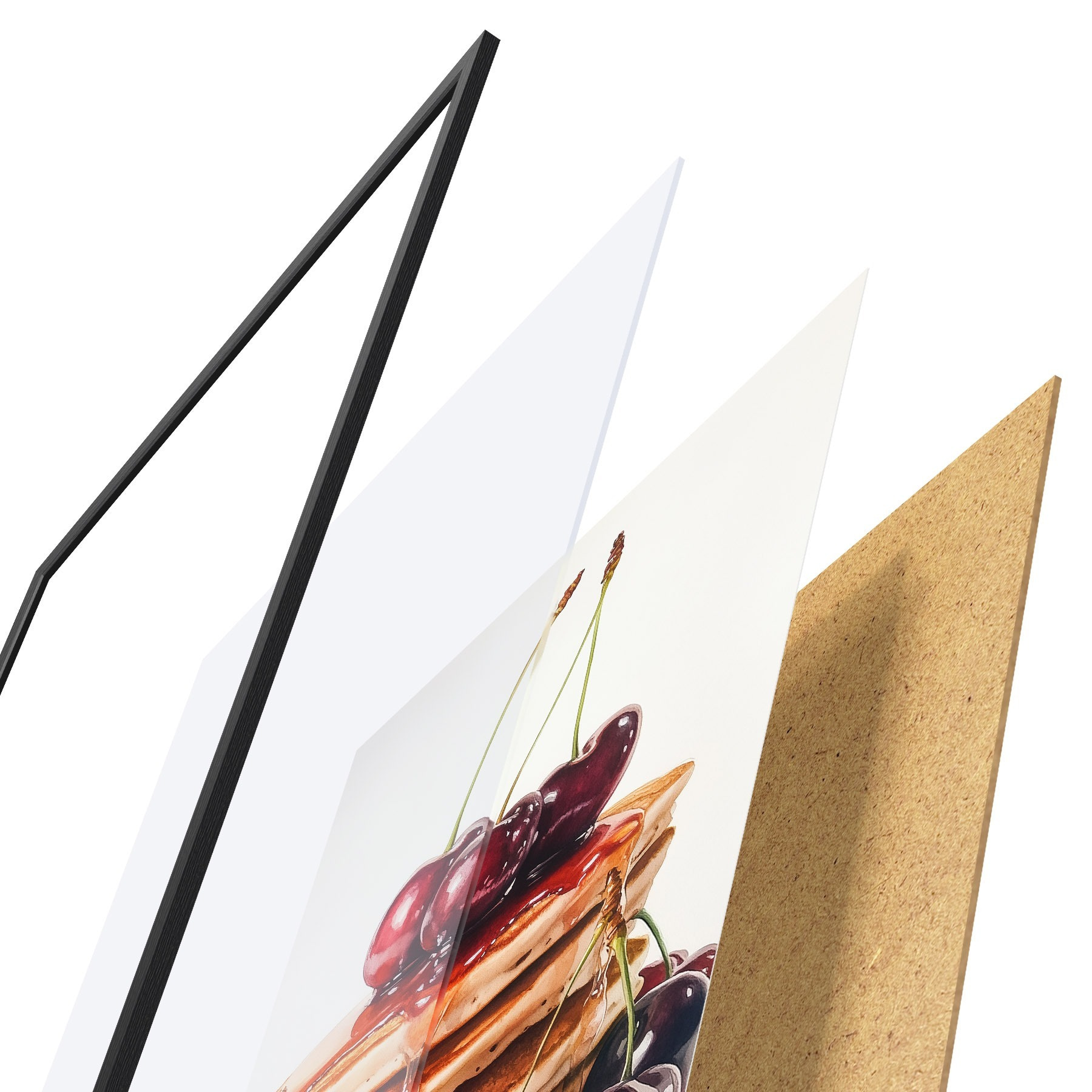 Plakát se skládá z rámu, plexiskla, tištěného obrazu a dřevotřískového podkladu. Díky úchytům na zadní straně lze plakát ihned zavěsit na zeď.