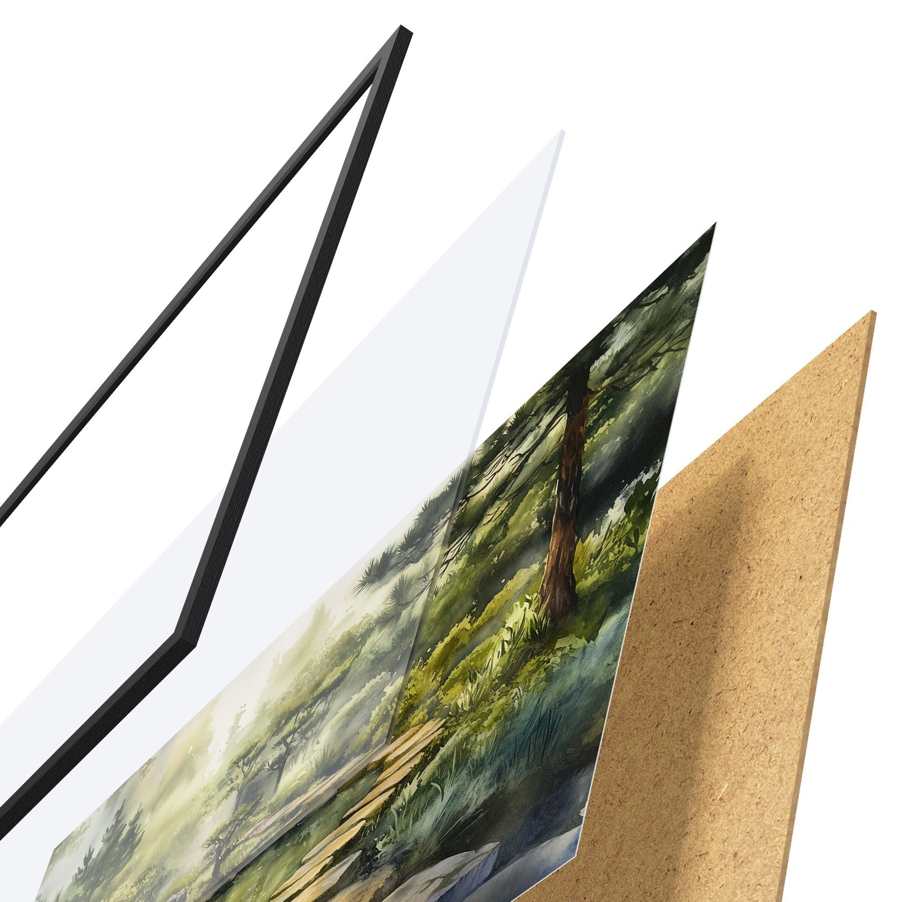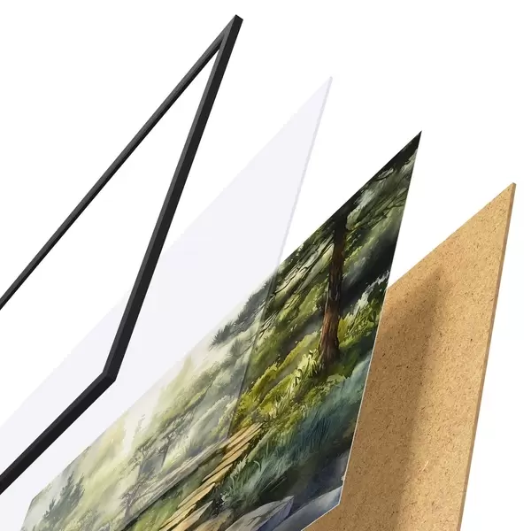 Plakát se skládá z rámu, plexiskla, tištěného obrazu a dřevotřískového podkladu. Díky úchytům na zadní straně lze plakát ihned zavěsit na zeď.