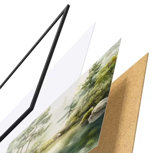 Plakát se skládá z rámu, plexiskla, tištěného obrazu a dřevotřískového podkladu. Díky úchytům na zadní straně lze plakát ihned zavěsit na zeď.