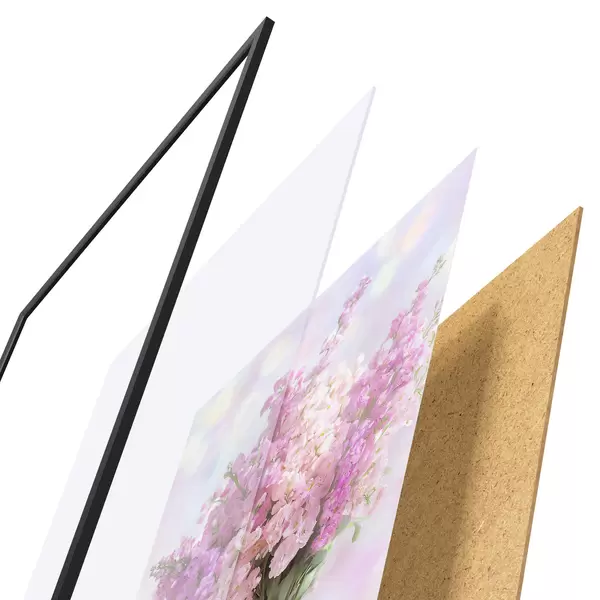 Plakát se skládá z rámu, plexiskla, tištěného obrazu a dřevotřískového podkladu. Díky úchytům na zadní straně lze plakát ihned zavěsit na zeď.