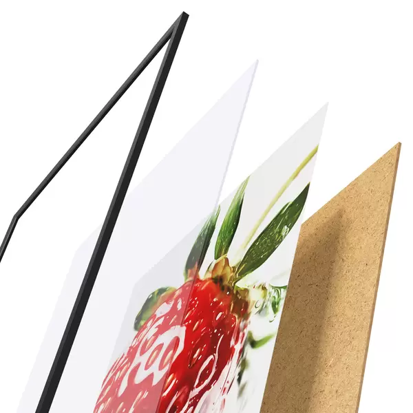 Plakát se skládá z rámu, plexiskla, tištěného obrazu a dřevotřískového podkladu. Díky úchytům na zadní straně lze plakát ihned zavěsit na zeď.