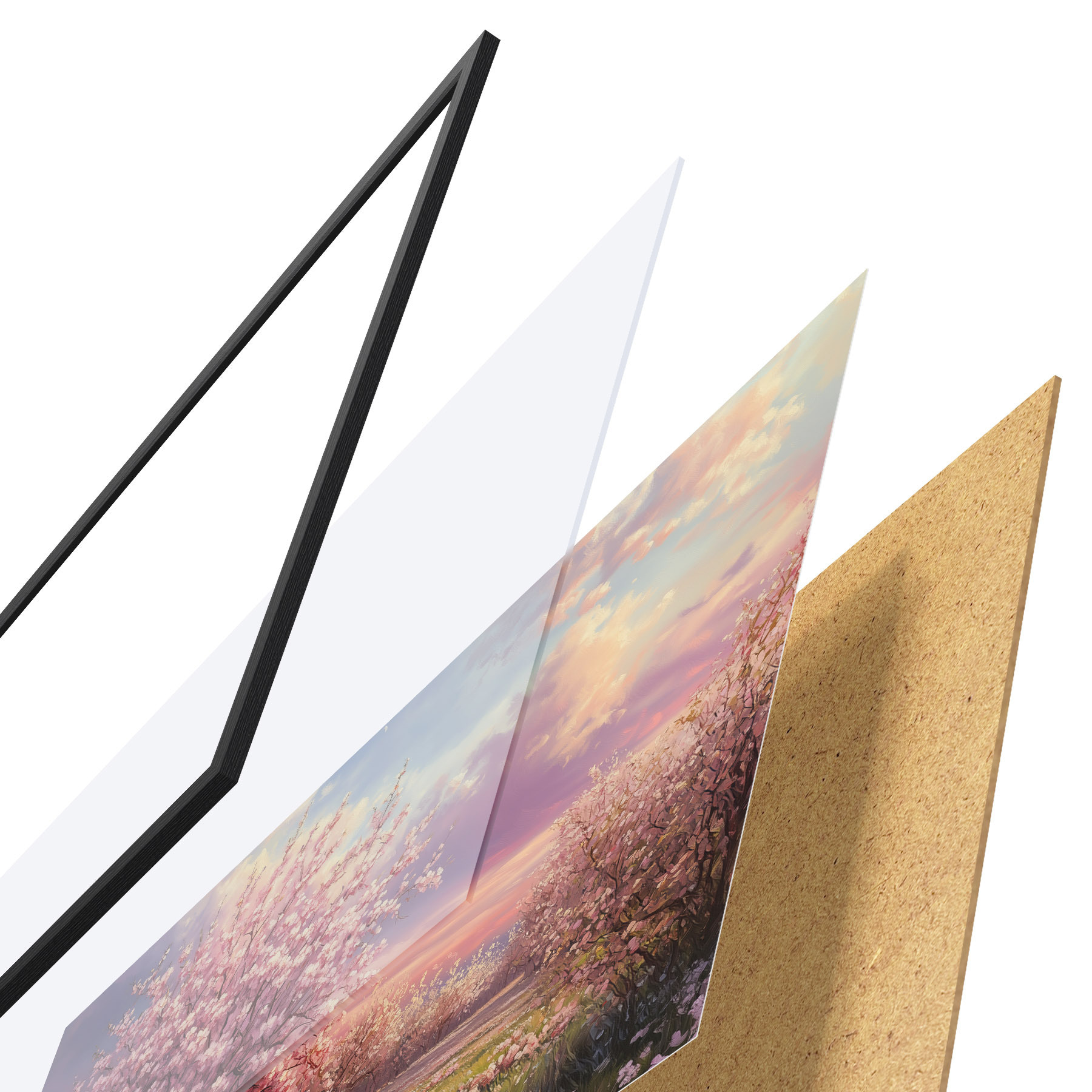 Plakát se skládá z rámu, plexiskla, tištěného obrazu a dřevotřískového podkladu. Díky úchytům na zadní straně lze plakát ihned zavěsit na zeď.