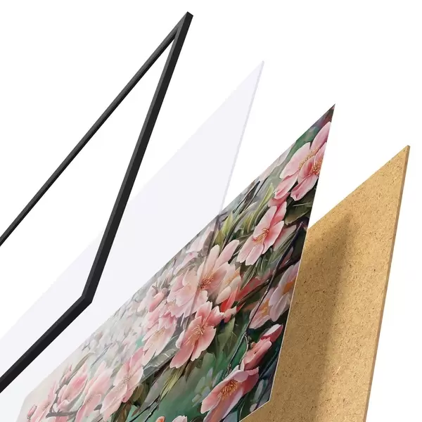 Plakát se skládá z rámu, plexiskla, tištěného obrazu a dřevotřískového podkladu. Díky úchytům na zadní straně lze plakát ihned zavěsit na zeď.