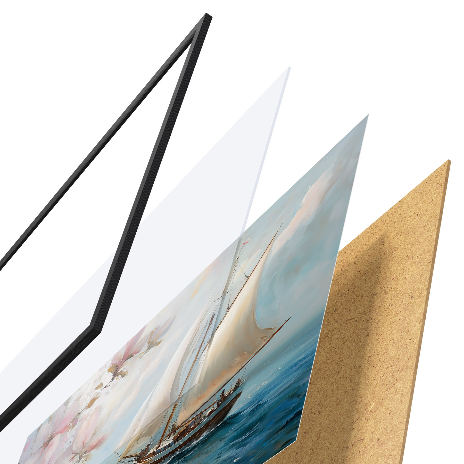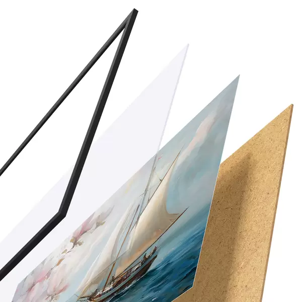 Plakát se skládá z rámu, plexiskla, tištěného obrazu a dřevotřískového podkladu. Díky úchytům na zadní straně lze plakát ihned zavěsit na zeď.