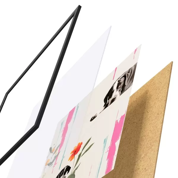 Plakát se skládá z rámu, plexiskla, tištěného obrazu a dřevotřískového podkladu. Díky úchytům na zadní straně lze plakát ihned zavěsit na zeď.