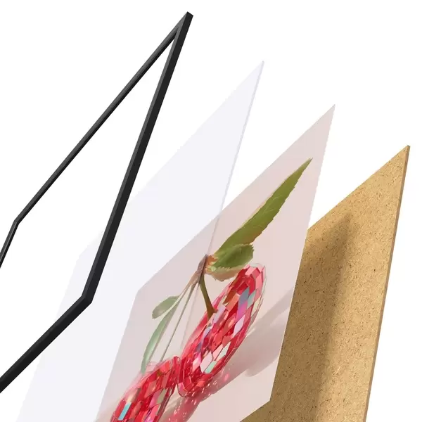 Plakát se skládá z rámu, plexiskla, tištěného obrazu a dřevotřískového podkladu. Díky úchytům na zadní straně lze plakát ihned zavěsit na zeď.